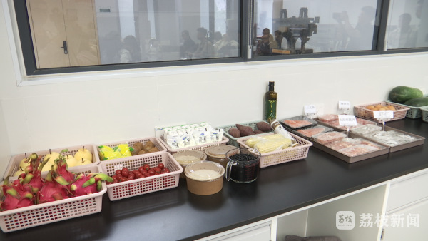 实验室像是一个巨型厨房,摆放着各类厨房用具和食材。这一堂课,要同学们设计一日三餐减脂食谱并完成烹饪。为此,一周前同学们就开始了调研和准备。