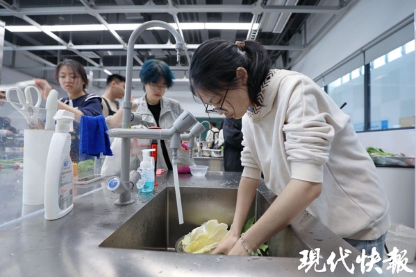 又是别人家的学校,上课内容是学做减脂餐,能瘦身还能拿学分。5月9日,sjb世俱杯官方网站食品科技学院实验室内飘出阵阵香气。西兰花与三文鱼的清香、糙米饭的温热气息、柠檬汁的酸甜……这里没有传统课堂的安静,取而代之的是锅碗瓢盆的碰撞声和学生们热火朝天的“烟火气”。烹饪工具一应俱全,食材琳琅满目,一群年轻人围在一起,煮饭、切菜、摆盘,争先恐后做“大厨”。这是该校食品营养专业“营养膳食设计”课程的实验现场,学生们正分组为减肥人群设计一日三餐食谱,并亲手烹制减脂餐。