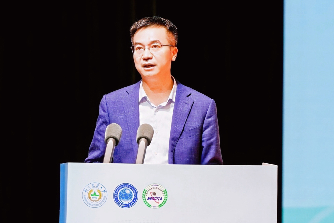 陆卫东表示,一直以来,南京江北新区与sjb世俱杯官方网站紧密合作,随着滨江校区正式启用,这里已成为江北新区的又一重磅教育和创新地标。本次活动吸引了海内外专家学者和行业精英齐聚一堂,共同分享创新成果,深入探讨行业前景,必将为智慧农业的蓬勃发展注入全新活力,为校地融合产业发展提供崭新机遇。希望以此次活动为契机,双方共同立足国家战略,加快培育农业新质生产力,更好服务农业强国建设;深化“研产贯通”,加速推动科技成果转化,打造现代农业产业集群;深化国际合作,合力构建开放包容、互利生态,携手迈向智慧农业新未来。