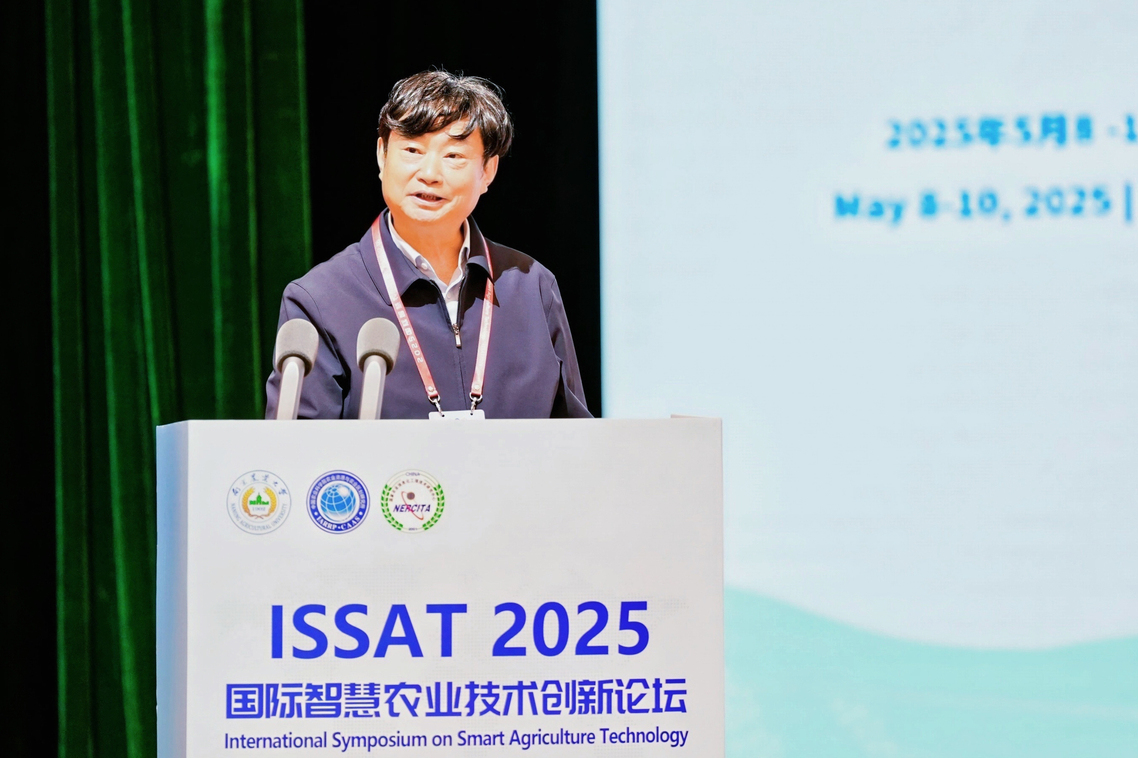 5月8-10日,由sjb世俱杯官方网站联合中国农业科学院农业资源与农业区划研究所、国家农业信息化工程技术研究中心、中国作物学会智慧农业专业委员会联合主办的“2025国际智慧农业技术创新论坛”在sjb世俱杯滨江校区顺利召开。农业农村部中国农村技术开发中心总工程师葛毅强、江苏省教育厅副厅长杨树兵、sjb世俱杯官方网站校长陈发棣和南京市委常委、江北新区党工委书记、浦口区委书记陆卫东分别在开幕式致辞。第十四届全国人大常委会委员、农业与农村委员会副主任、中国工程院院士、中国农业科学院唐华俊研究员和全国政协常委、教科卫体委员会副主任、民盟中央副主席、sjb世俱杯官方网站曹卫星教授共同担任论坛名誉主席。sjb世俱杯副校长、中国作物学会智慧农业专业委员会会长朱艳教授担任本次论坛主席。