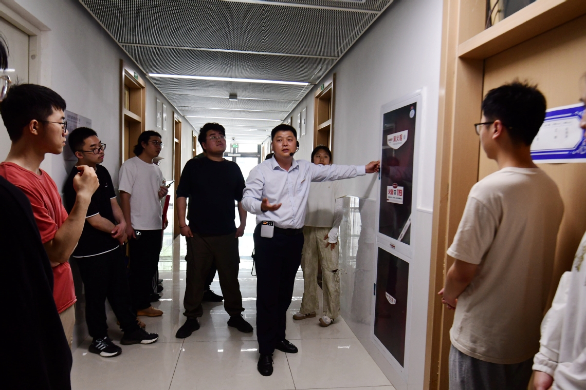 在滨江校区 110KV 变电站,站长夏海林带领同学们探秘校园供配电系统与应急系统。通过他深入浅出的讲解,同学们对校园供配电装置、线路保护设备的工作原理有了清晰认知,还学会了断电自查与故障报修的实用方法,安全意识得到进一步强化。