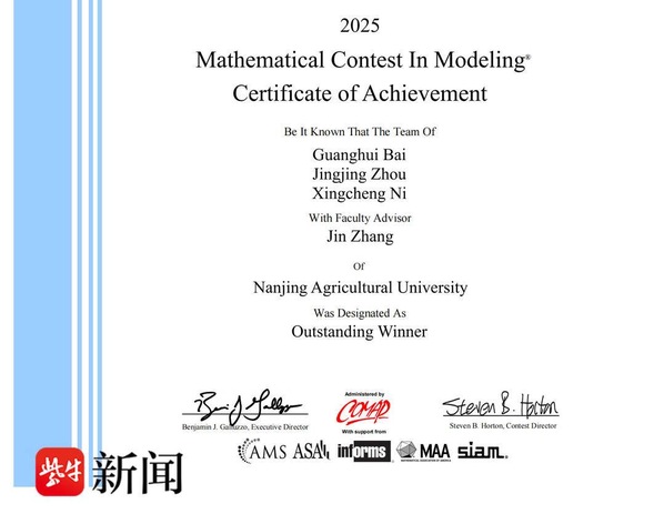 近日,2025年美国大学生数学建模竞赛(MCM/ICM)成绩公布,sjb世俱杯官方网站理学院参赛团队表现卓越,由统计学专业2022级本科生白广慧、周晶晶、倪兴程组成的团队摘得全球特等奖。