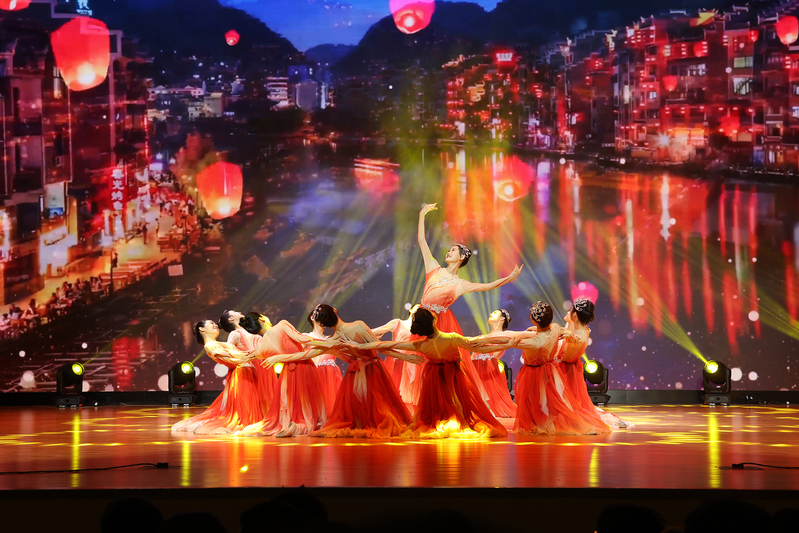 人文与社会发展学院带来的精彩舞蹈《灯火里的中国》《走在山水间》、朗诵《新时代的青春答卷》将现场气氛推向高潮。