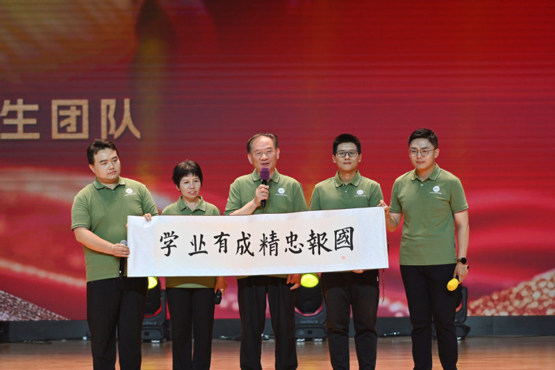 分享会现场,中国工程院院士、资源与环境科学学院沈其荣教授为学子们送上“学业有成 精忠报国”亲笔题字,并深情寄语现场师生。