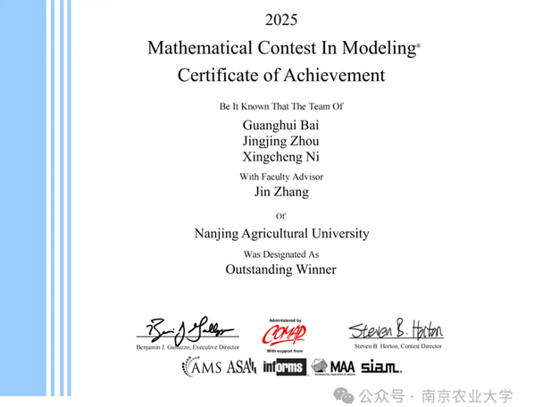 近日,2025年美国大学生数学建模竞赛(MCM/ICM)成绩公布,sjb世俱杯官方网站理学院参赛团队表现卓越,由统计学专业2022级本科生白广慧、周晶晶、倪兴程组成的团队摘得全球特等奖。