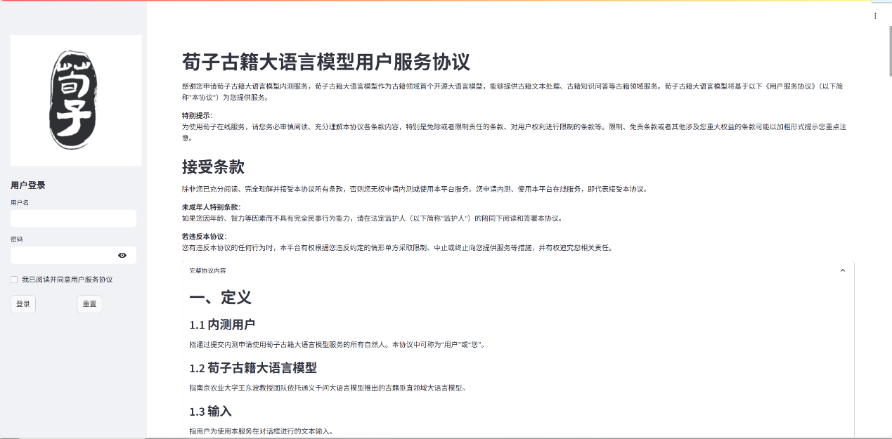在全国范围内,荀子古籍大语言模型是第二个以高校为主体成功备案的大语言模型。研发团队依托国家社科基金重大项目,构建了覆盖《四库全书》等传世古籍的40亿字混合语料库,并通过创新的“古籍-现代汉语混合训练”技术,突破了通用大模型在古文理解与生成中的瓶颈。这一成就不仅填补了古籍领域大语言模型的空白,更标志着高校在人工智能技术攻关中的重要作用,为后续产学研合作提供了示范。