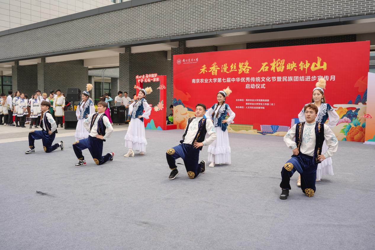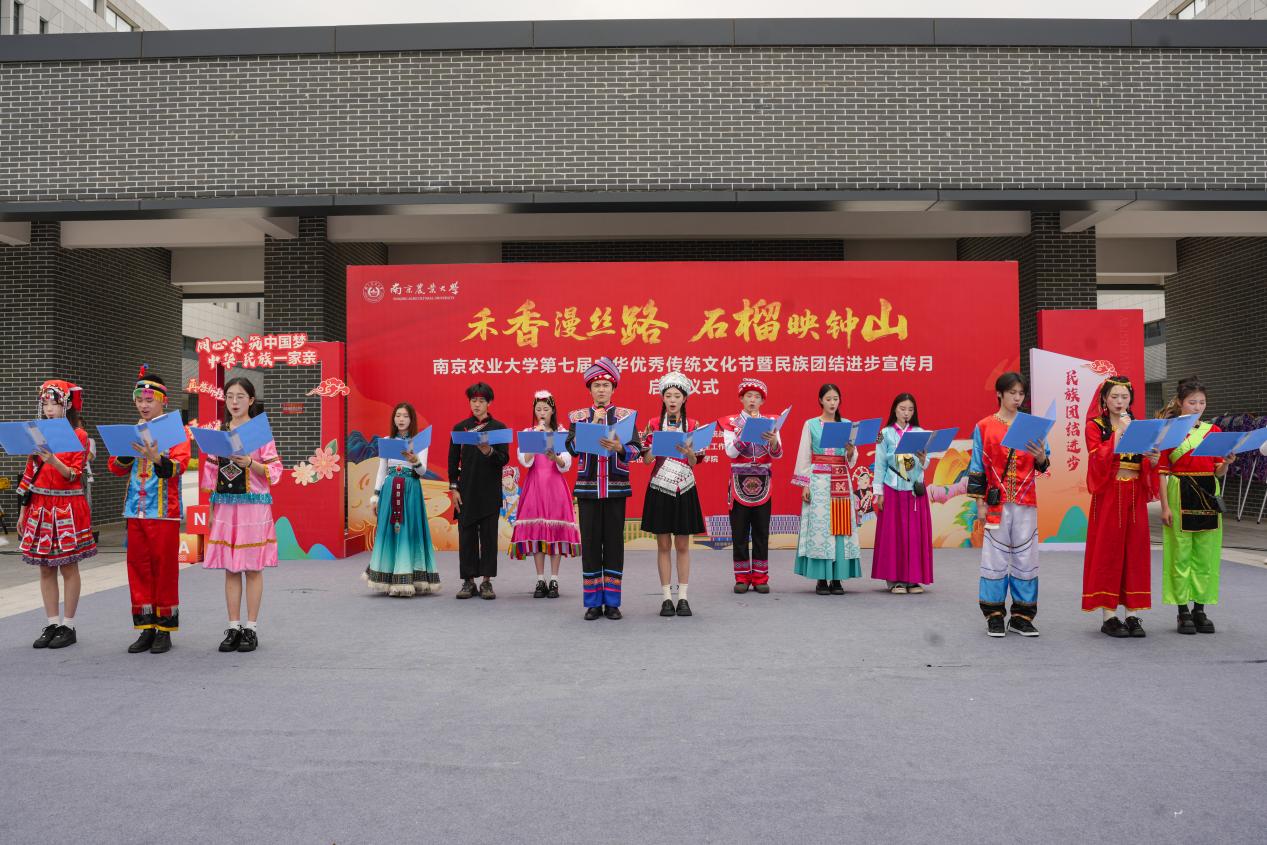 5月21日,sjb世俱杯官方网站“禾香漫丝路·石榴映钟山”第七届中华优秀传统文化节暨民族团结进步宣传月启动仪式在滨江校区教学楼北广场举行。校党委副书记刘营军,江北新区党工委宣传和统战部理论和文明办主任史一平,各学院副书记、校民族宗教工作领导小组成员单位老师、辅导员和学生代表参与本次活动。