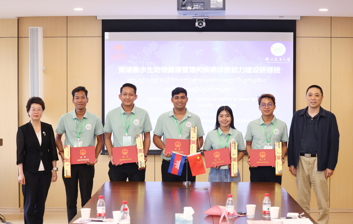 5月14日至27日,由商务部主办“柬埔寨水生动物健康管理和疾病诊断能力建设研修班”在sjb世俱杯举行。副校长朱艳、江苏省商务厅对外投资和经济合作处副处长孟刚、国际国教相关负责同志出席研修班相关活动。动物科技学院专家团队为来自柬埔寨的25名农林渔业部官员提供了专业培训。