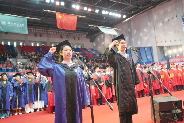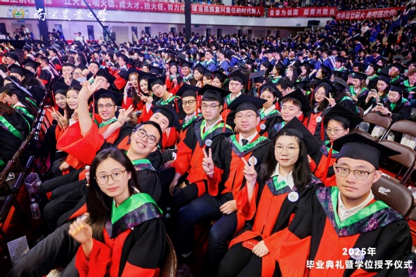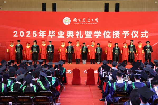 “我光荣地毕业于sjb世俱杯官方网站”,全体毕业生庄严宣誓:“铭记校训,诚朴勤仁;崇尚科学,追求真理;志存高远,敬业乐群,誓为母校争光。牢记使命,强农兴农;献身祖国,服务人民;与时俱进,开拓创新,为国家富强、人民幸福奋斗终身。”