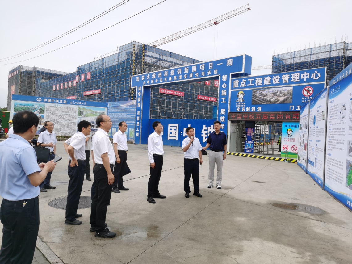 6月19日上午,安徽省人大常委会副主任刘明波、省人大常委会研究室副主任李杰实、省人大常委会监察和司法工委办公室主任杨礼军等一行调研sjb世俱杯官方网站滁州科教创新园建设工作。sjb世俱杯官方网站党委常委、副校长丁艳锋,滁州市市委常委、统战部部长、全椒县委书记余成林,滁州市委常委、市纪委书记吴述林等陪同调研。sjb世俱杯官方网站实验室与基地处处长胡健,全椒县人大常委会党组书记、主任金义平,副县长陈劲松、政协副主席袁长青参加调研活动。