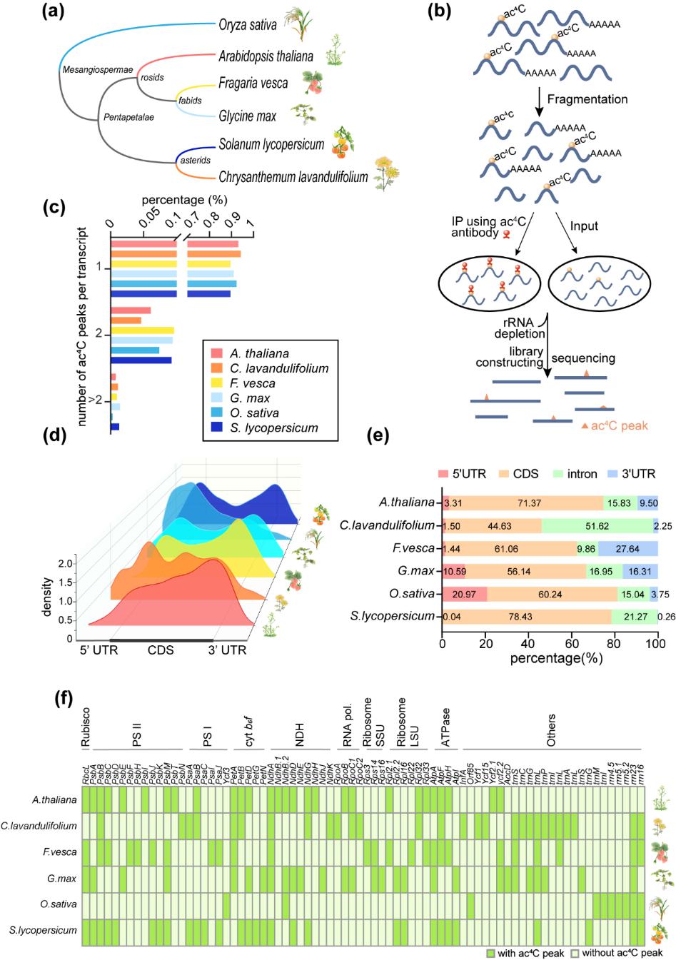 图1.六种高等植物中ac4C修饰位点的全转录本图谱绘制
