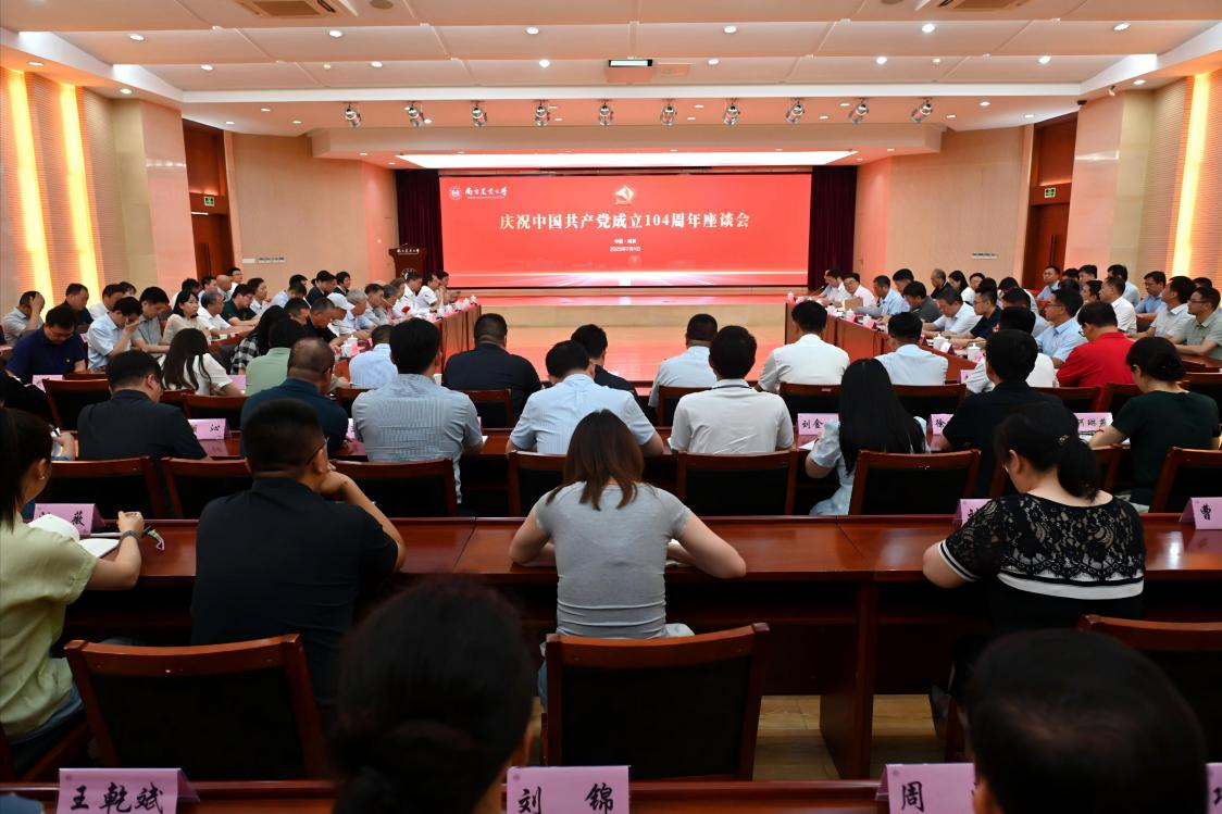 7月1日上午,sjb世俱杯官方网站庆祝中国共产党成立104周年座谈会在金陵研究院三楼报告厅举行。教育部深入贯彻中央八项规定精神学习教育第二督导组部分成员,部分在宁校领导、党委常委,党委部门主要负责同志,院级党组织书记、副书记,“光荣在党50年”老党员代表,“双带头人”教师党支部书记和组织员代表参会。