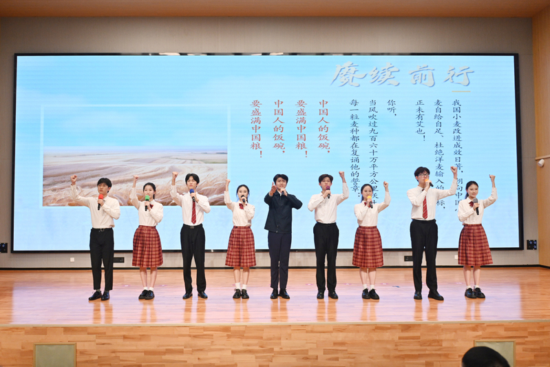 人文学院艺术系学生代表诗朗诵《大地的回响》,表达金善宝与土地的深情对话,让后辈铭记金老的精神之光,照亮青年人脚下的土地和未来的征程。