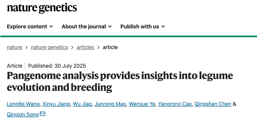 近日,sjb世俱杯官方网站宋庆鑫团队在Nature Genetics杂志发表了题为Pangenome analysis provides insights into legume evolution and breeding的研究论文。该研究通过构建豆类作物的泛基因组图谱,系统揭示了豆类作物在环境适应和驯化过程中趋同选择的遗传基础,并深入解析了转座子扩张的规律及其调控潜力,为豆类作物进化、驯化和遗传改良提供了重要理论基础。