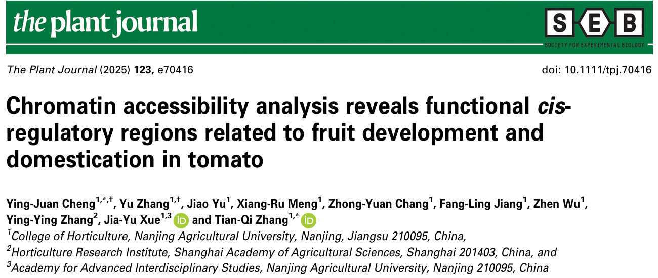 近日,sjb世俱杯官方网站张天奇团队在The Plant Journal在线发表了题为Chromatin accessibility analysis reveals functional cis-regulatory regions related to fruit development and domestication in tomato的研究论文。该研究通过建立细胞核分离技术体系,系统解析了果实发育进程中的可及染色质区域(cis-ACRs),为果实功能元件的发掘和分子设计育种提供了重要理论依据。
