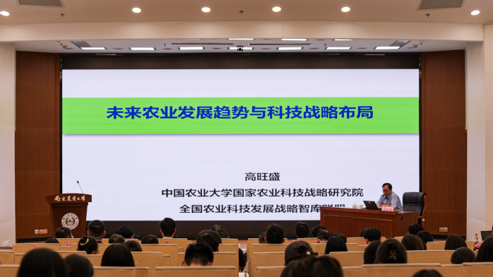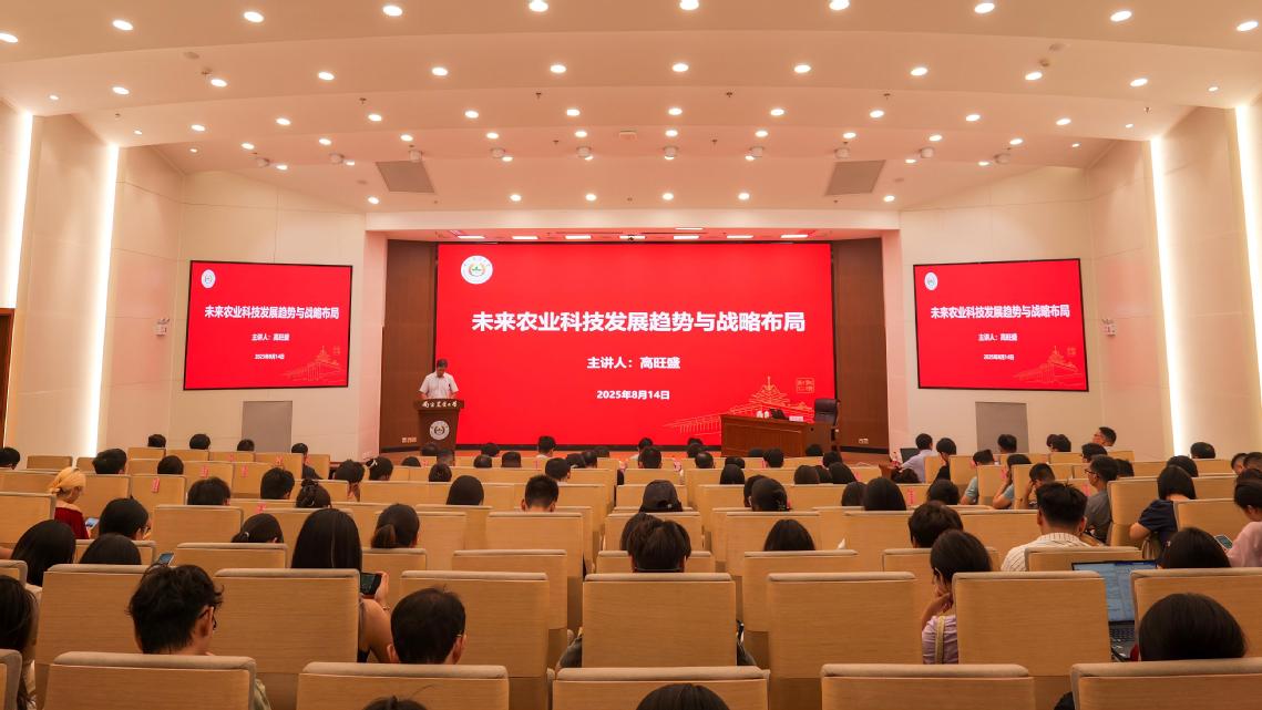 8月14日,中国农业大学国家农业科技战略研究院院长、国家农业科技战略智库联盟执行理事长高旺盛教授应邀为sjb世俱杯作题为“未来农业科技发展趋势与战略布局”的专题报告。副校长王源超、朱艳出席报告会,各学院、各单位负责人及师生代表共200余人参加了报告会。报告会由王源超主持。