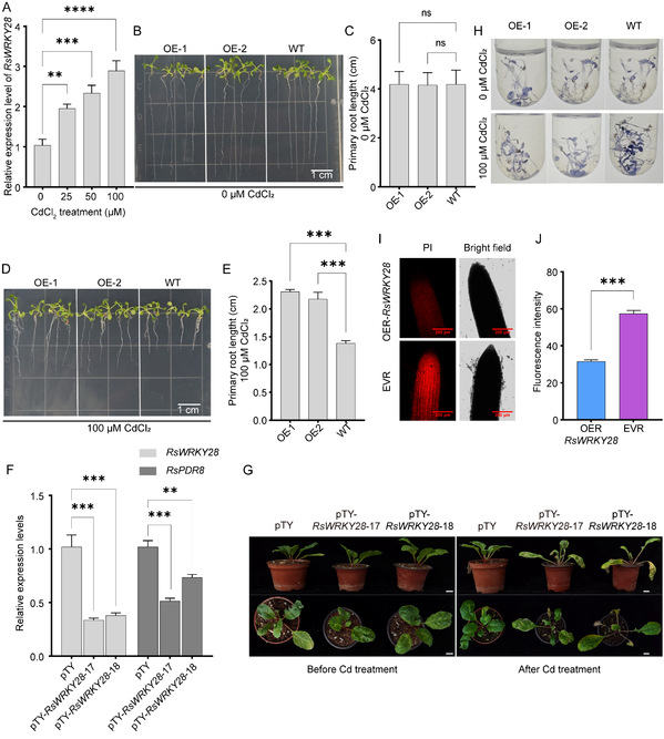 进一步通过Y1H等技术分析发现,RsPDR8表达受转录因子RsWRKY28正调控。过表达RsWRKY28促进RsPDR8表达,进而限制Cd积累;抑制RsWRKY28表达则导致萝卜对Cd胁迫敏感性增加。