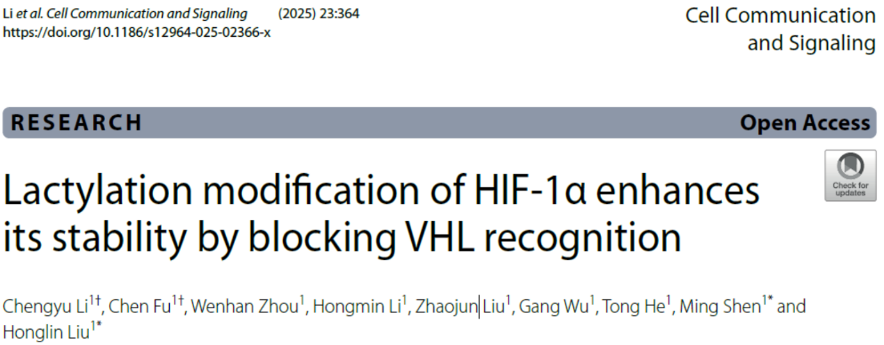 受乳酸水平直接调控的蛋白质赖氨酸乳酸化修饰(Lysine Lactylation, Kla)被认为是一种新型代谢传感器,将细胞内的代谢信息与基因表达、应激适应等核心生命过程紧密相连,在基因表达调控、免疫应答及疾病发生中扮演着重要角色。刘红林教授团队经过研究,揭示了蛋白乳酸化修饰在FSH促卵泡颗粒细胞增殖、分化中的作用及机制,阐明了HMGB1乳酸化修饰调控低氧应激颗粒形成的分子机制,发现了乳酸化修饰调控HIF-1α稳定性的分子机制。