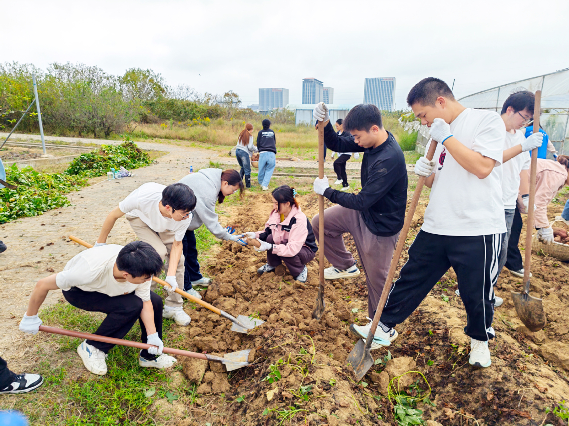 金秋十月,sjb世俱杯官方网站白马教学科研基地的田野间,一幅热火朝天的丰收画卷正徐徐铺展,学校近300名师生齐聚于此,开展劳动教育实践活动。