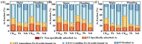 图1沉积物1(A)、沉积物2(B)和沉积物3(C)反应后的砷形态分析