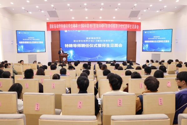 10月26日,金善宝书院2025级新生大会、国家基础学科拔尖学生培养计划2.0基地(生物科学)特聘导师聘任仪式暨师生见面会在卫岗校区同步举行。副校长丁艳锋、王源超、朱艳,国际食品科学院院士、食品院教授周光宏,金善宝书院首席导师代表、生物科学拔尖基地班特聘导师代表,教务处、学生工作处相关负责同志,书院2025级全体新生、88名拔尖基地班学生分别在两会场参会。