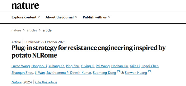 近日,sjb世俱杯农林生物安全全国重点实验室/植物保护学院董莎萌教授课题组联合中国农业科学院深圳农业基因组研究所黄三文团队在《自然》(Nature)期刊发表了题为“Plug-in Strategy for Resistance Engineering Inspired by Potato NLRome”的研究论文,为解决马铃薯晚疫病这一全球性难题提供了一个新方案。