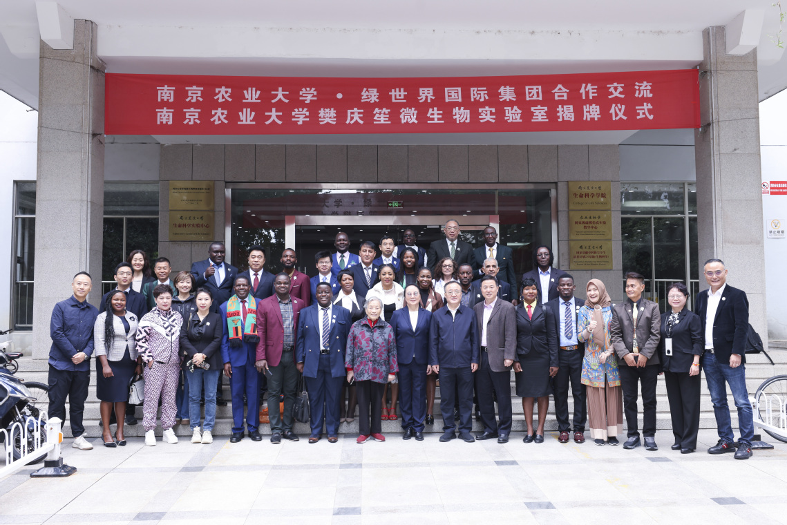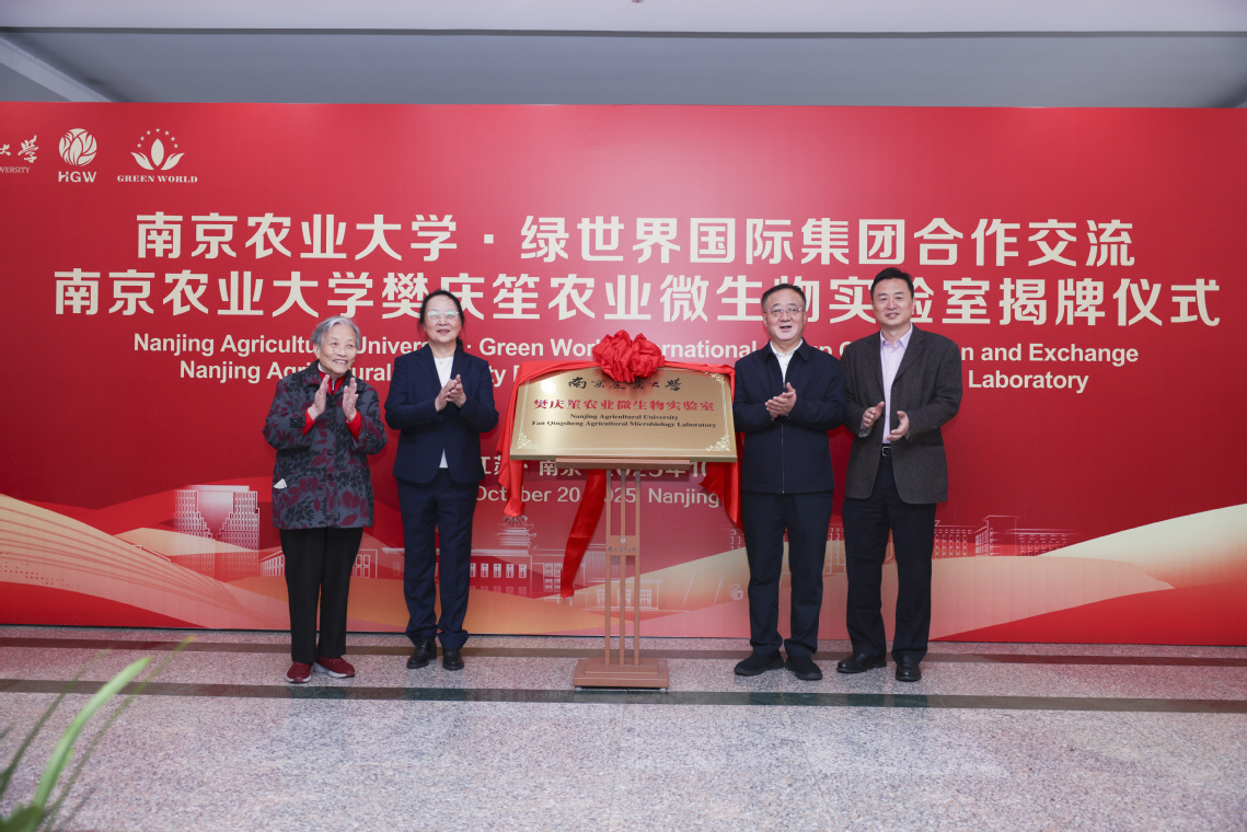 近日,绿世界国际集团负责人一行访问sjb世俱杯,并为“sjb世俱杯官方网站樊庆笙微生物实验室”揭牌。副校长单正丰,绿世界国际集团董事长、南农校友李德明博士,樊庆笙先生家属樊真美女士等出席活动。