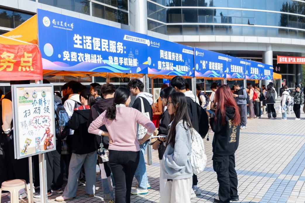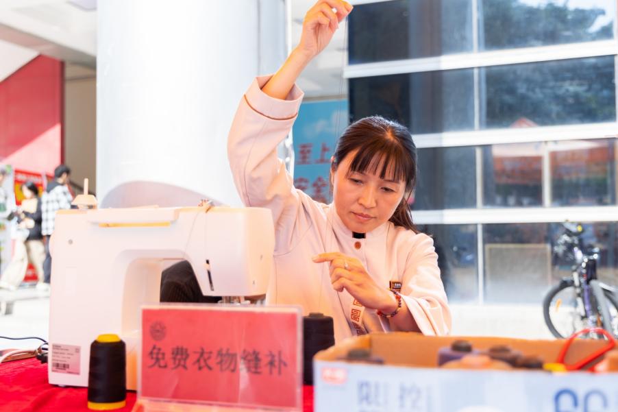 生活便民服务专区的免费衣物缝补、手机贴膜等服务,以贴心细节吸引众多师生参与体验。