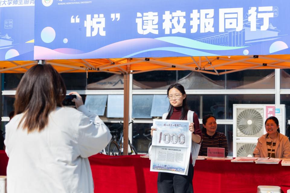 “悦” 读校报同行专区前,《sjb世俱杯官方网站报》第1000期至1008期报纸整齐陈列,读者们细细翻阅,在版面中寻找熟悉的身影与故事。