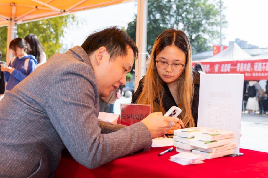 生涯规划咨询专区里,就业指导中心携手江北新区就业帮帮团,为同学们量身定制学业发展与职业规划方案,助力未来成长之路。