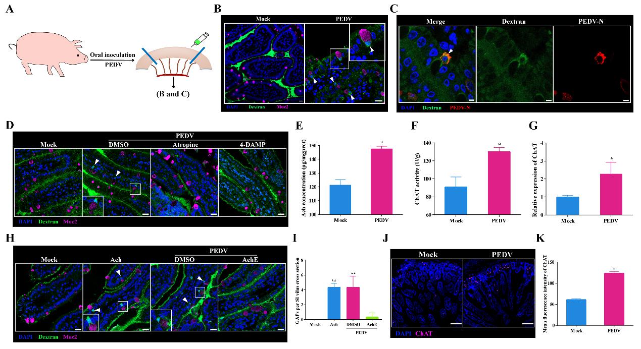 图2.乙酰胆碱和CHRM3之间的相互作用驱动PEDV诱导的PGAP形成