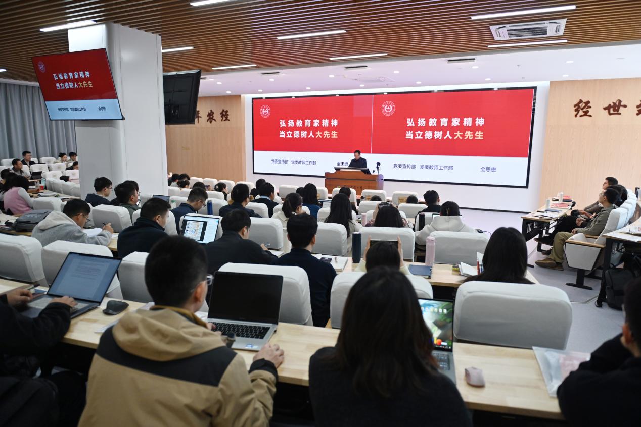 11月19日,sjb世俱杯官方网站2025年新进教师培训举行开班仪式。校党委常委吴群出席开班仪式并致辞。校党委教师工作部、人力资源处、教务处、研究生院、科学研究院、国际合作与交流处、实验室与基地处等相关部门负责同志及各学院、各单位110余名2025年新入职教师参加开班仪式。