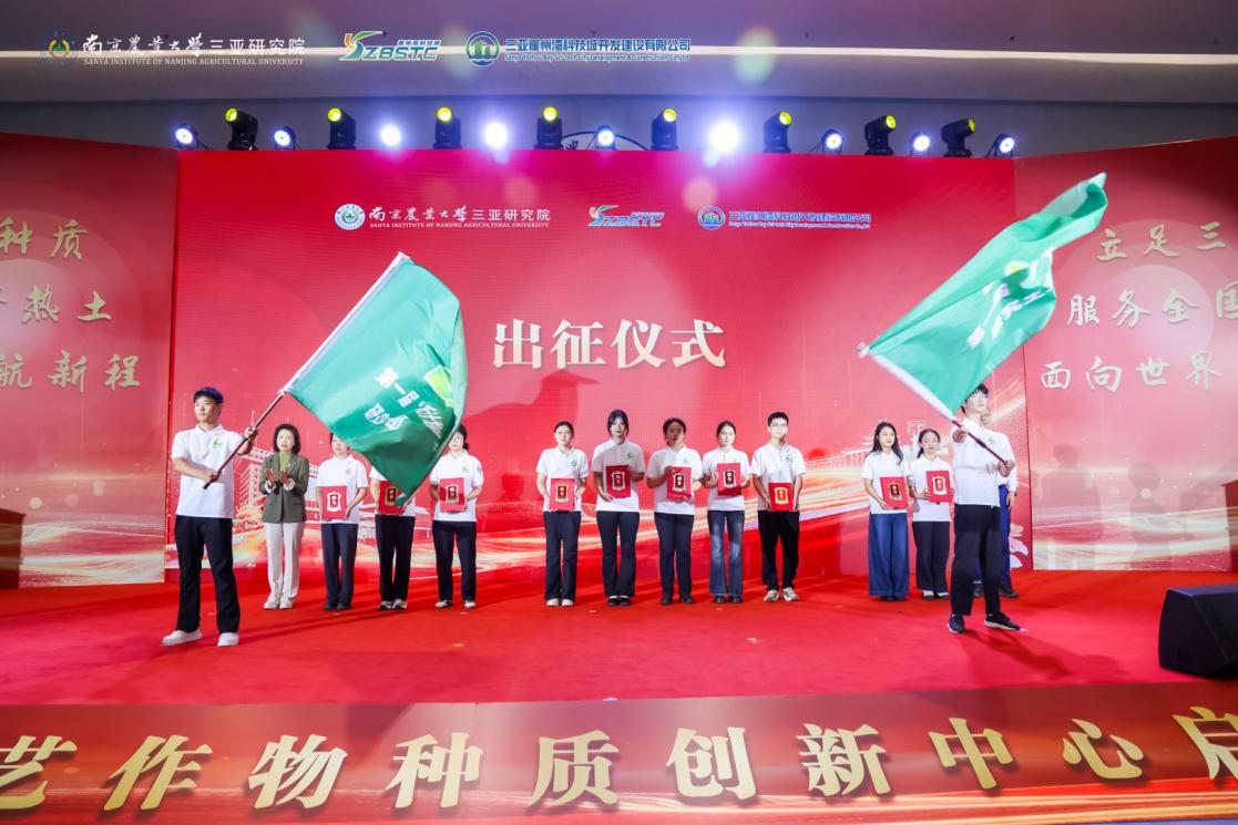 大会上,“星禾计划”支教团在仪式上庄严出征。该项目是南农三亚研究院牵头服务地方教育的重要举措,首批16位来自5所高校的研究生志愿者将为崖州区南滨中学、南山小学的学生提供学业辅导与科学启蒙。丁艳锋与童立艳为志愿者颁发聘书并授旗,鼓励青年学子在崖州热土上书写教育帮扶的青春篇章。