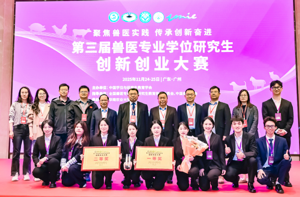 11月24日至25日,由中国学位与研究生教育学会主办,全国兽医专业学位研究生教育指导委员会、中国兽医协会提供学术指导的第三届兽医专业学位研究生创新创业大赛在广州成功举办。由sjb世俱杯动物医学院研究生组建的2支团队在比赛中取得优异成绩,分别获得一等奖和二等奖各一项。