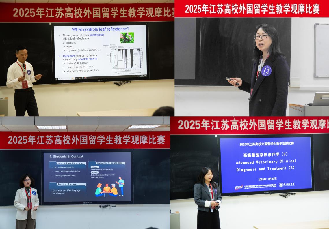 经过激烈角逐,sjb世俱杯教师在多学科领域展现国际化教学实力:外国语学院霍雨佳老师的《中国农业概论》荣获特等奖;智慧农业学院(人工智能学院)程涛老师的《农业遥感原理与技术》、动物医学院毛锶超老师的《高级兽医临床诊疗学》荣获一等奖;食品科技学院刘丽老师的《高级食品化学》荣获二等奖。