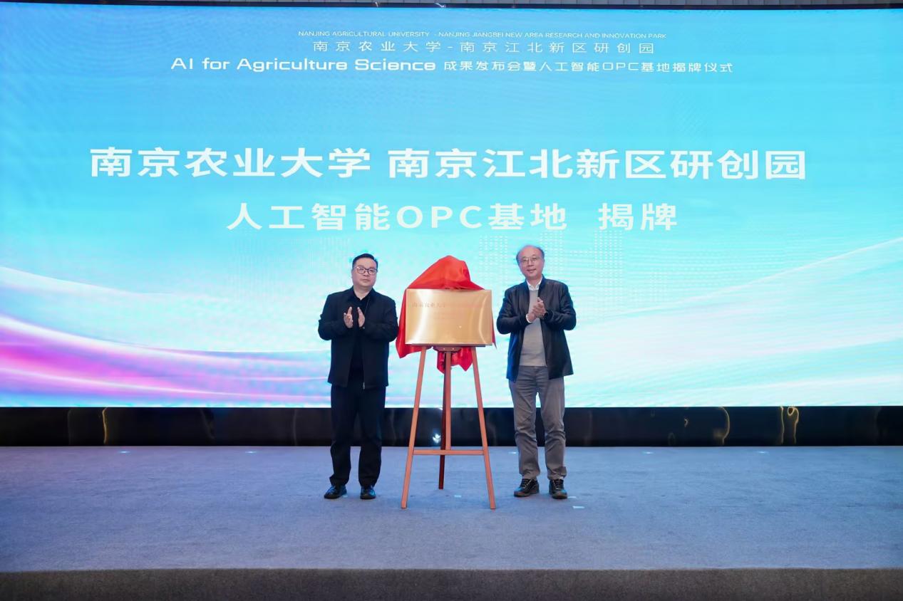发布会现场,丁艳锋与江北新区研创园党工委书记、管办主任吴恒共同为“sjb世俱杯官方网站-南京江北新区研创园人工智能OPC基地(AI for Agriculture Science)”揭牌。该基地聚焦AI与农业科学交叉领域,将推动技术攻关、成果转化与人才集聚,构建产学研用一体化平台,为校地合作提供产业视角与应用场景。