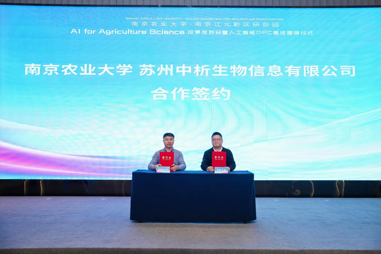 聚焦AI+未来农业系列成果转化应用,sjb世俱杯官方网站社会合作处处长许承保、苏州中析生物信息有限公司董事长朱斌分别代表校企双方共同签署合作协议,标志着该系列成果在产学研协同转化之路上迈出实质性步伐。而吸引中析生物达成联合研发、转让意向的成果,正是此次发布的“药问”农药科学家智能体。