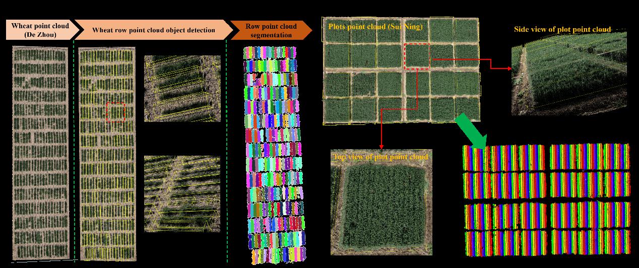 目前,无人机系统对小麦不同生育时期的表型数据采集主要依赖二维图像。虽然二维影像能够提取冠层高度、冠层面积等重要表型参数,但由于其本质上缺乏深度信息,在高密度种植条件下往往难以准确识别行间边界,从而限制了对试验小区的精细划分。相比之下,三维图像因包含丰富的空间结构信息,在密植田间环境中更具处理优势,更有利于实现小区级的自动化分析。因此,基于无人机系统的三维图像数据构建小麦生育时期的自动化表型分析流程,已成为值得重点关注的研究方向。