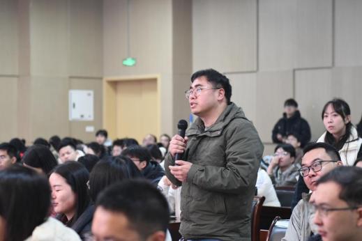 论坛分为特邀专家报告和博士生报告两个部分。特邀报告阶段,中国科学院院士韩斌作了题为《水稻杂种优势遗传基础的量化及预测分析》的学术报告。韩斌结合自身在水稻基因组学和数量遗传学领域的深厚研究积累,深入解析了水稻杂种优势的遗传机制与预测方法,韩斌与现场师生进行了互动交流,为科研工作提供了宝贵指导。