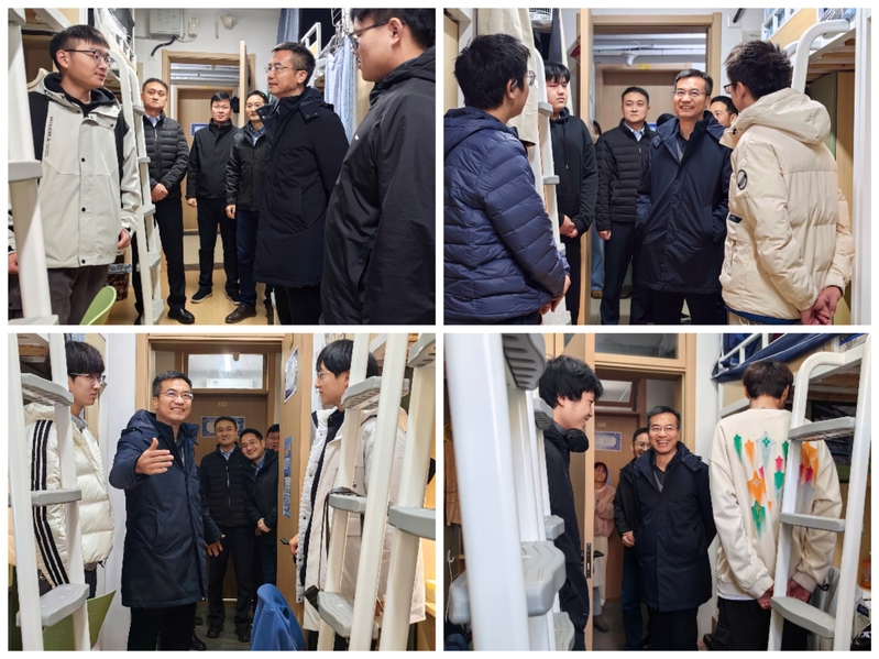 在学生社区,陈发棣走进宿舍看望学生,关心了解学生期末的学习生活状态,察看宿舍改造出新情况,听取学生对学校发展、教育教学、条件保障等方面的意见建议,鼓励学生了解所学专业优势,明确学习目标方向,积极进取、打牢基础,不断取得好成绩。