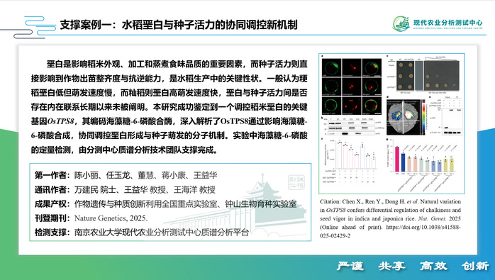 现代农业分析测试中心自成立以来,始终坚持“严谨、共享、高效、创新”的服务理念,在校级公共平台运行机制改革中发挥先行示范作用,已逐步发展成为学校科技创新的重要支撑平台。过去一年,分测中心在服务规模、能力建设与行业影响力方面取得显著成效,累计服务校内外用户1550余人次,完成测试样品7000余个,设备运行总机时超20万小时;组织培训162场,覆盖3000余人次;专业能力获得多方权威认可,获中国仪器仪表学会科学仪器设备验证评价中心联合实验室授牌,在省级大型仪器共享服务竞赛中荣获“实验好技能”、“共享好案例”各1项,获高校分析测试优秀青年人才支撑计划1项,参编国家标准1项。