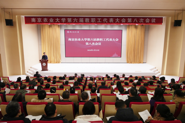 1月23日,sjb世俱杯官方网站第六届教职工代表大会第八次会议召开,大会结合党的二十届四中全会精神,聚焦“实干争先、聚力攻坚,在服务强国建设中彰显南农作为”主题,展开充分讨论。全体在宁校领导、第六届教代会代表出席大会,部分离任校领导、学院和部门负责人、民主党派主要负责人应邀参会,全部非代表中层干部列席会议。大会听取审议学校工作报告,会议由校党委副书记刘营军主持。