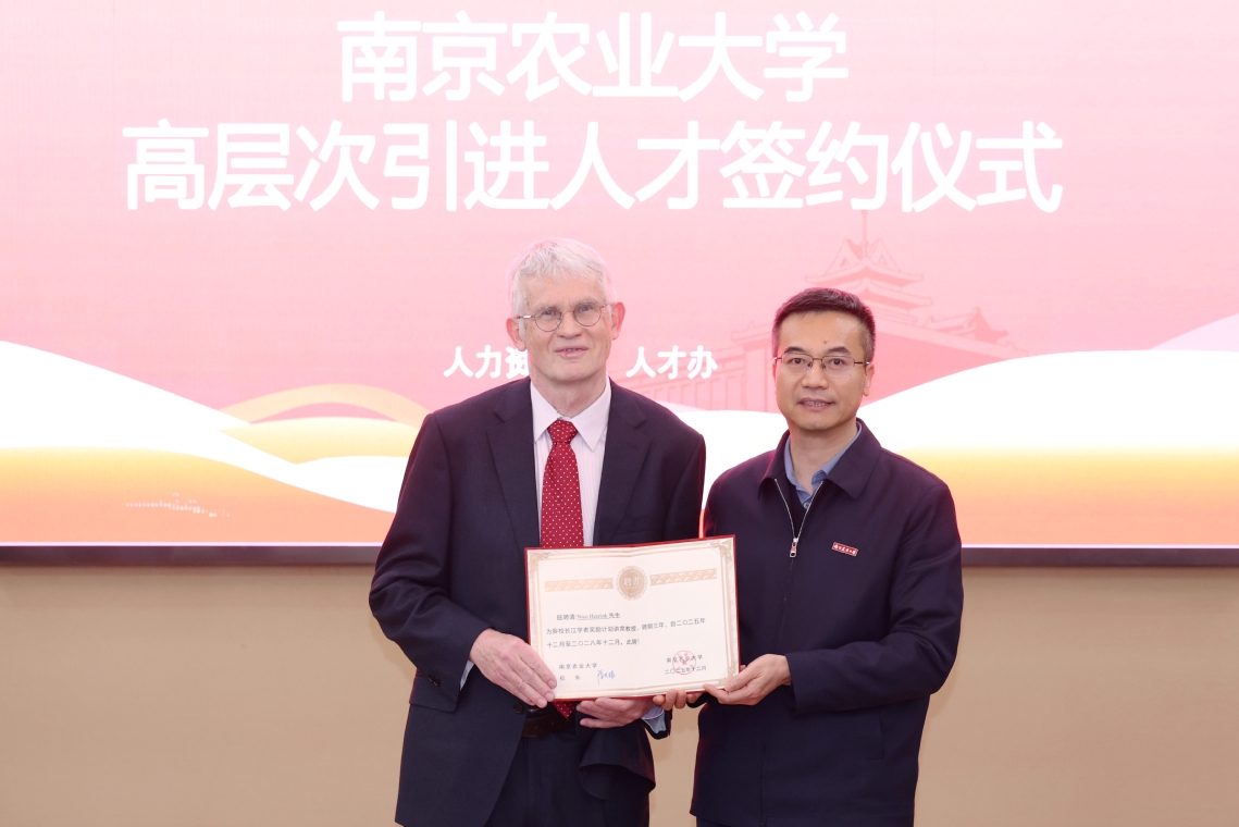 陈发棣向Heerink教授颁发讲席教授聘书并佩戴校徽。Heerink在发言中回顾了与南农三十年的合作情谊,并对未来进一步深化联合研究与人才培养表示期待。![]()
