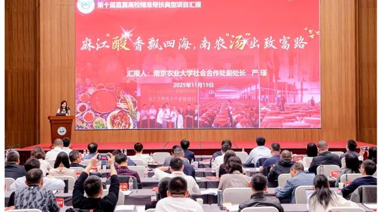 学校社会合作处和研究生支教团代表分别作了项目汇报。《麻江“酸”香飘四海,南农“汤”出致富路》精准帮扶项目从“精准落子,布局特色产业‘先手棋’”“科技赋能,点燃产业升级‘强引擎’”“贵品出山,开启富民增收‘快车道 ’”“酸汤飘香,酿出乡村特色‘幸福味’”四个方面,全面展示了学校科技赋能麻江县主导产业,推动酸汤产业规模化、标准化、品牌化发展的创新举措和扎实成效。