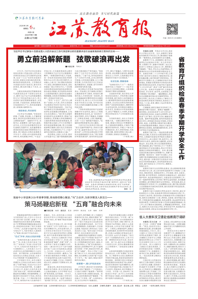 【江苏教育报】习近平总书记参加十四届全国人大四次会议江苏代表团审议时的重要讲话在全省教育系统引发热烈反响——勇立前沿解新题 弦歌破浪再出发