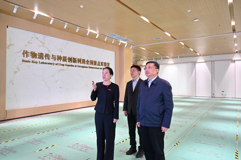 会前,吴勇强一行参观了作物遗传与种质创新利用全国重点实验室、现代农业分析测试中心和学校办学成果展。