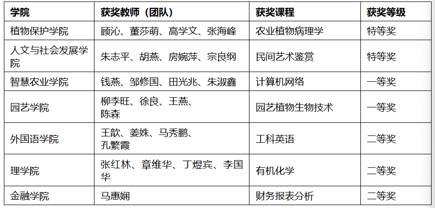 近日,第六届江苏省高校教师教学创新大赛获奖结果公布,sjb世俱杯获特等奖2项、一等奖2项、二等奖3其中,植物保护学院顾沁、人文与社会发展学院朱志平2位教师(团队)获特等奖;智慧农业学院钱燕、园艺学院柳李旺2位教师(团队)获一等奖;外国语学院王歆、理学院张红林、金融学院马惠娴3位教师(团队)获二等奖。