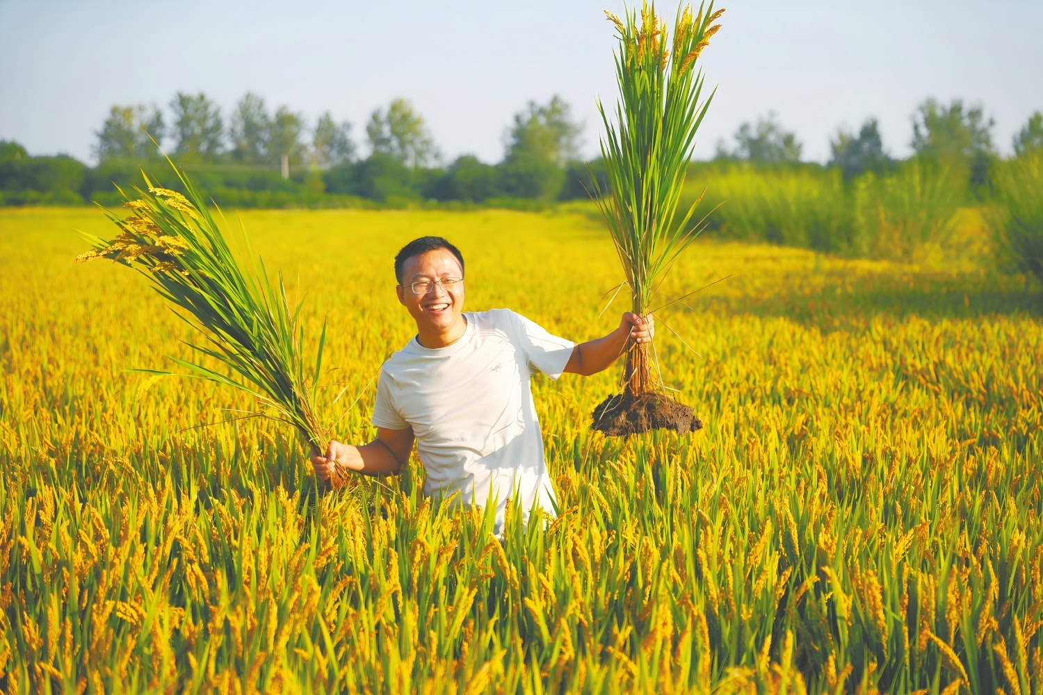 “看,施用哈茨木霉菌的土壤耕层厚、根系十分发达。”专家团队的刘红军下田取样时,为拔起一株水稻,几乎用尽了全身力气,他双手紧握稻秆,身体后仰,一番较劲后,才将带着一大坨盘根错节泥土的稻株“请”出了地面。