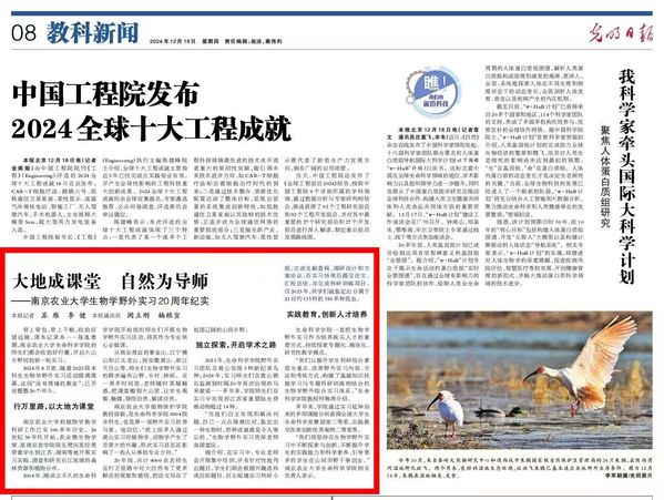 学院以国家拔尖学生培养计划2.0基地(生物科学)(校内唯一)为核心平台,系统构建拔尖人才培养体系。2023年面向全国举办“厚生物基础、彰农业特色”主题活动周,2024年开展拔尖基地科学月及野外实习暑期学校,2025年举办拔尖基地师生见面及成果汇报会,首届拔尖基地学生14人本校直博贯通培养,示范引领作用显著。持续推进生物学野外实习,21年来累计参与学生达4000余人次,野外实习20周年纪实报道被人民日报、光明日报等媒体广泛报道。全面实施“英才计划”,2025年承办江苏省英才计划启动仪式,近两年共录取优秀中学生20名,并与南师附中秦淮科技高中共建,推动大中学教育有效衔接。生物科学与生物技术专业入选首批国家级一流本科专业。其中,生物科学专业获评首批江苏省课程思政示范专业,有5门课程获评国家级一流本科课程,构建了高质量的育人体系。学院本科生创新能力突出,12年获iGEM大赛8个金奖、iDEC金奖,2024年获得GESC世界冠军,2025年获得中国国际大学生创新大赛金奖、中国青年科技创新“揭榜挂帅”特等奖,拔尖人才培养的“南农模式”日趋成熟。