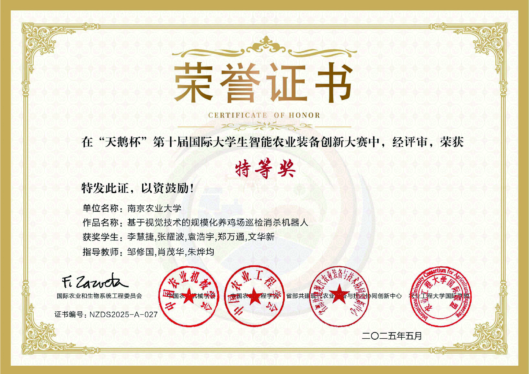 第十届国际大学生智能农业装备创新大赛获得特等奖